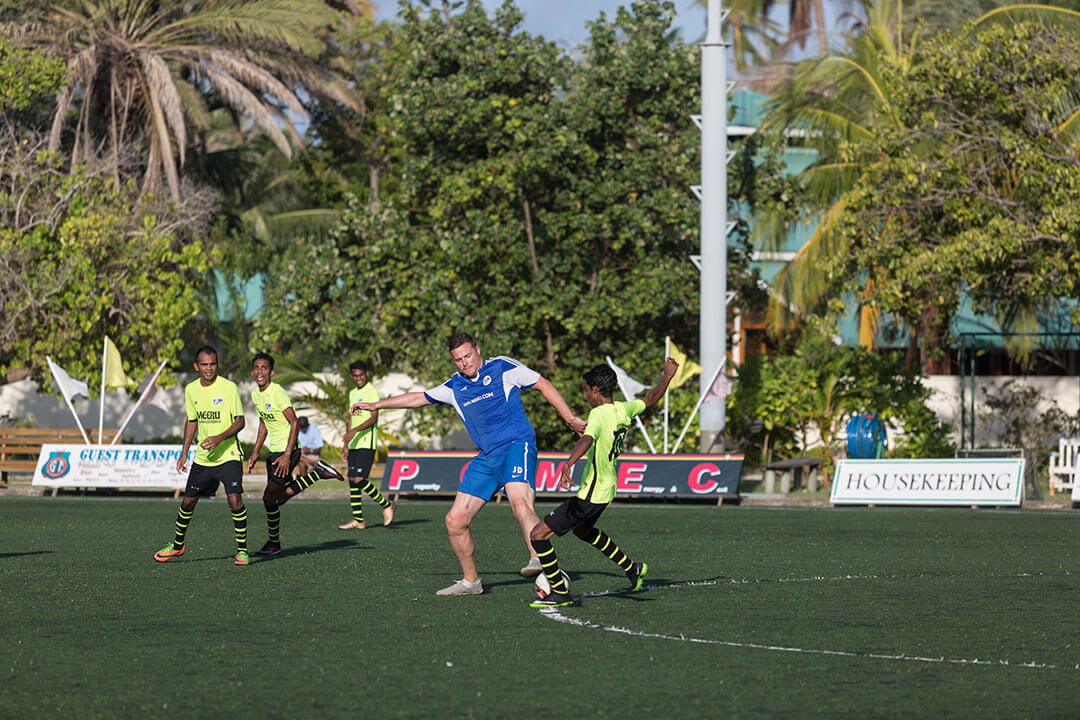 Selbstverständlich findest Du auf der Insel auch einen Fußballplatz, Volleyballfelder und ein Fitnesscenter. Natürlich besteht für alle Geräte, die Du für die verschiedenen Sportarten benötigst, die Möglichkeit, sie entweder im Wassersportcenter, in der Tauchschule oder an der Rezeption des Hotel Meeru Island Resort zu leihen.