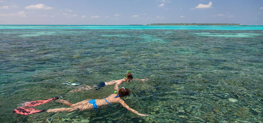Wer im Meeru Island Resort schnorcheln möchte, findet dafür beste Voraussetzungen. Vor allem für diejenigen, die nicht den Drang zum Tauchen verspüren, die Unterwasserwelt der Malediven aber trotzdem einmal hautnah erleben möchten, bietet sich die Chance, im Meeru Island Resort schnorcheln zu gehen. Schon nach kurzer Zeit erreichst Du schwimmend das Meeru Island Resort Hausriff, wo Du mit einem Schnorchel, einer Taucherbrille und Schwimmflossen bewaffnet beste Chancen hast, kleine und große Fische im Riff beobachten zu können.
