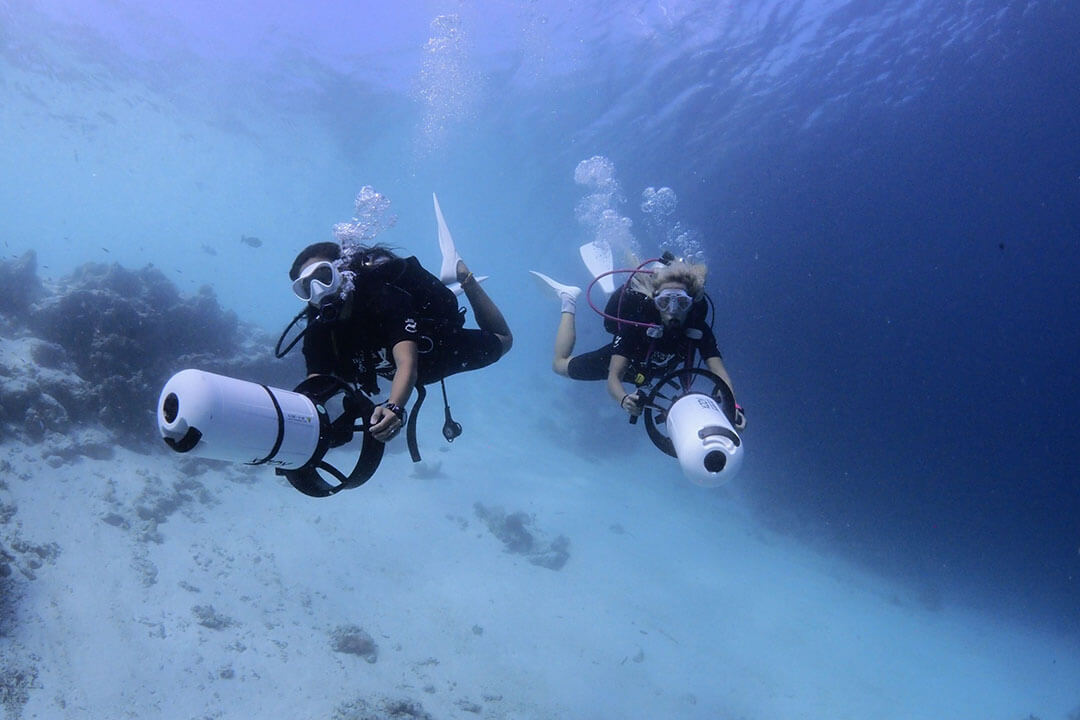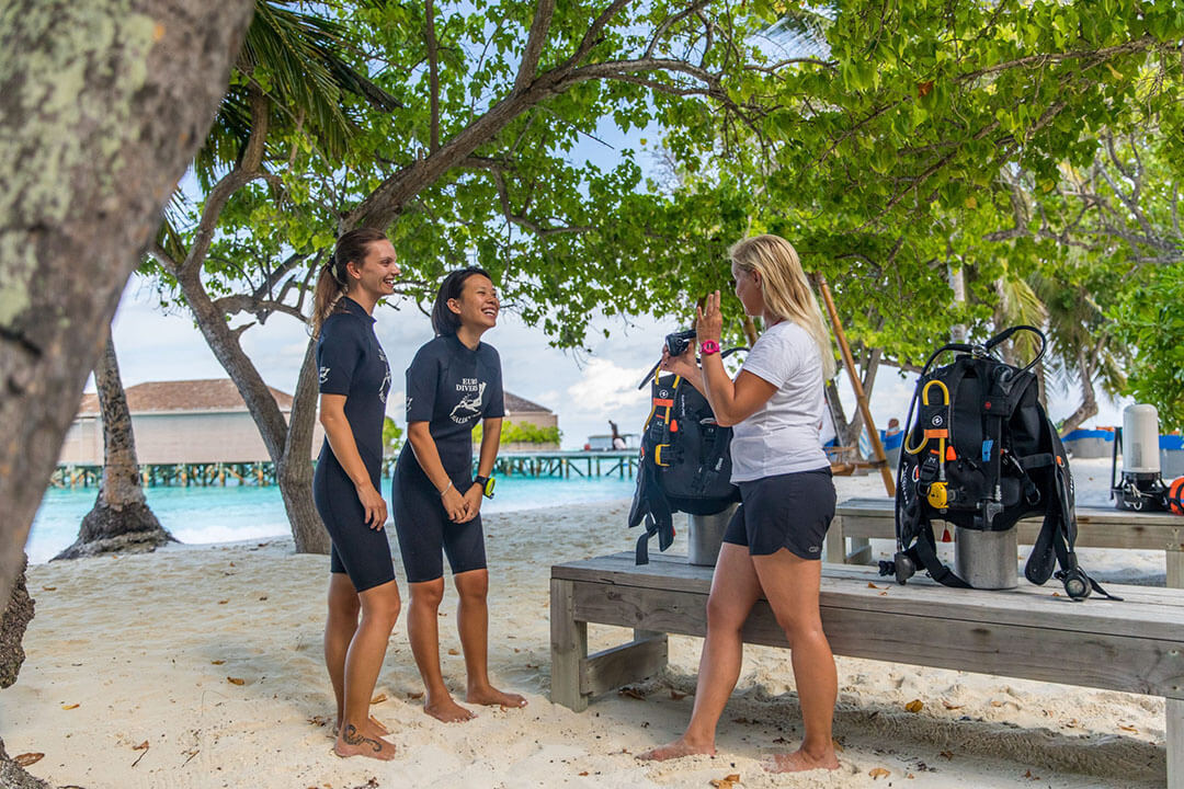 Was wäre ein Malediven Resort ohne eine passende Tauchschule? Die Mitarbeiter der mehrsprachigen SCUBA-Tauchschule im Malediven Meeru Island Resort leiten verschiedene geführte Tauchgänge die ganze Woche über. Zusätzlich kann man hier eine Vielzahl an unterschiedlichen Tauchscheinen für alle Erfahrungsstufen machen. Vom Tauchanfänger bis zum erfahrenen Taucher, der sich persönlich weiterbilden und noch einen weiteren Tauchschein machen möchte, findet hier jeder das für ihn passende Kursangebot. Die Lernmaterialien und die Ausrüstung für die Tauchgänge im Rahmen des Kurses werden natürlich von der Tauchschule gestellt.