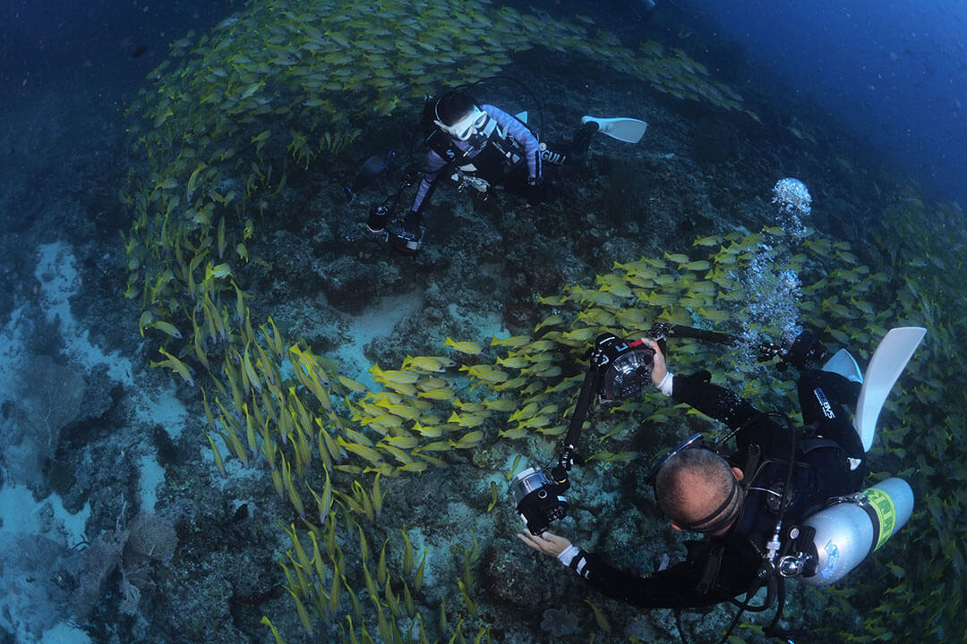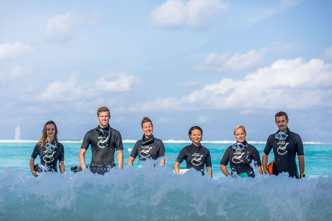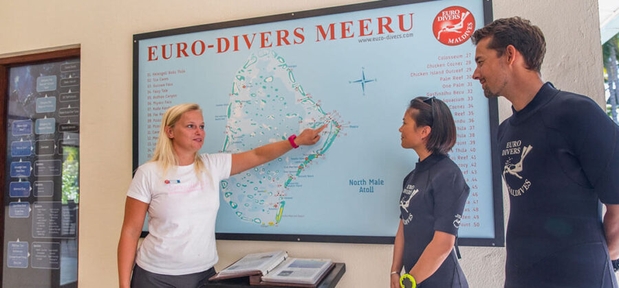 Auch besondere Tauchgänge, wie Frühtauchen, Abendtauchen oder Nachttauchen werden hier angeboten. Dabei muss man zum Tauchen nicht einmal weit weg fahren – das Meeru Island Resort Hausriff bietet wunderbare Möglichkeiten, die Tiere der Unterwasserwelt der Malediven hautnah und in nächster Nähe zum Hotel Meeru Island Resort zu erleben. Die notwendige Ausrüstung kannst Du in der Tauchschule leihen. Und jeden Dienstagabend präsentiert das Team der Tauchschule in der Kakuni Bar ein interessantes Video rund um das Thema Tauchen und die Unterwasserwelt der Malediven.