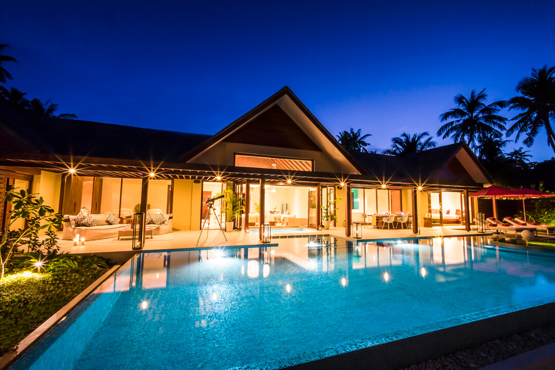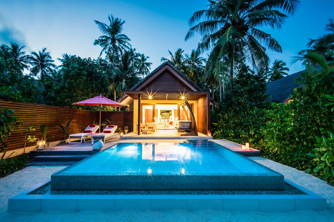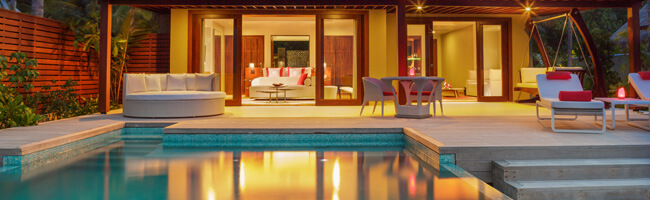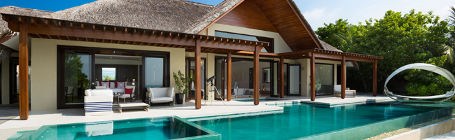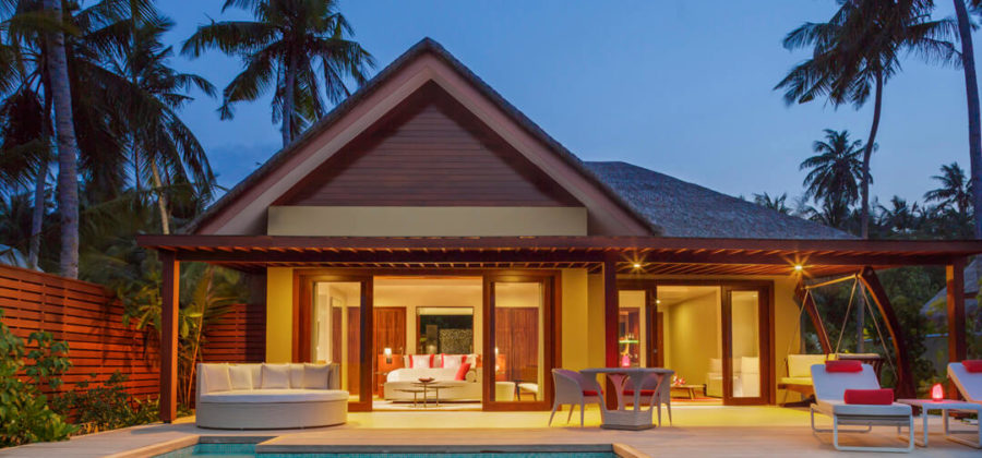 Hinweis: Es gibt auch eine Deluxe Version der Family Beach Villa mit Pool, welche über die gleiche Ausstattung verfügt, jedoch zum Sonnenuntergang ausgerichtet ist.