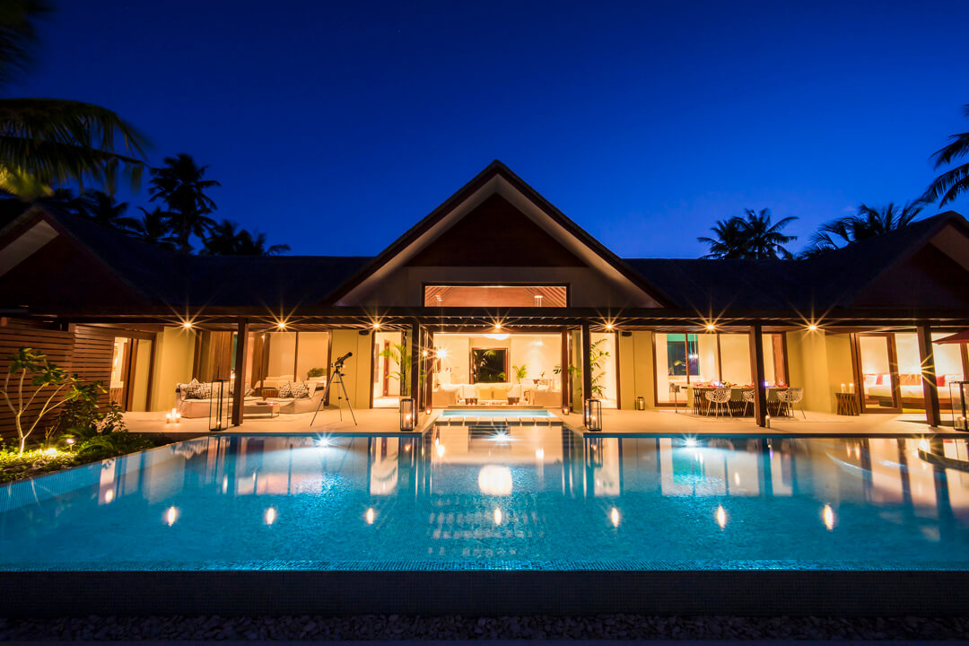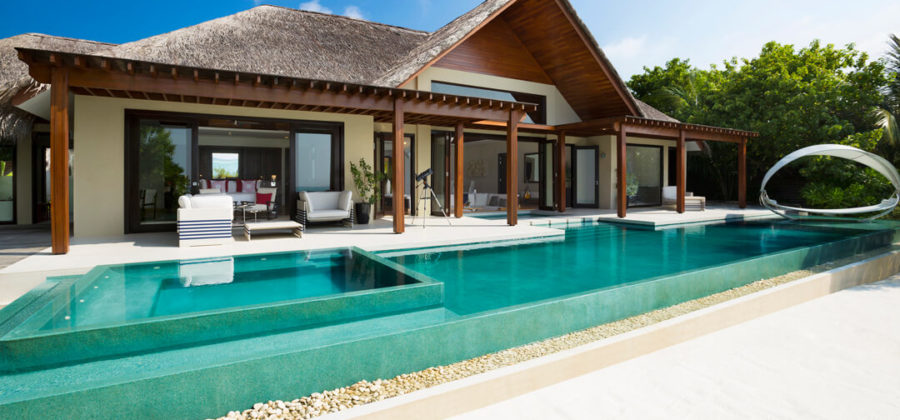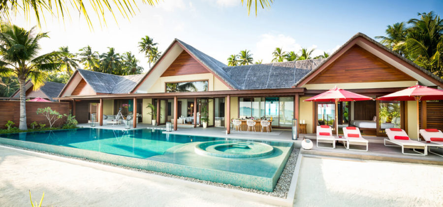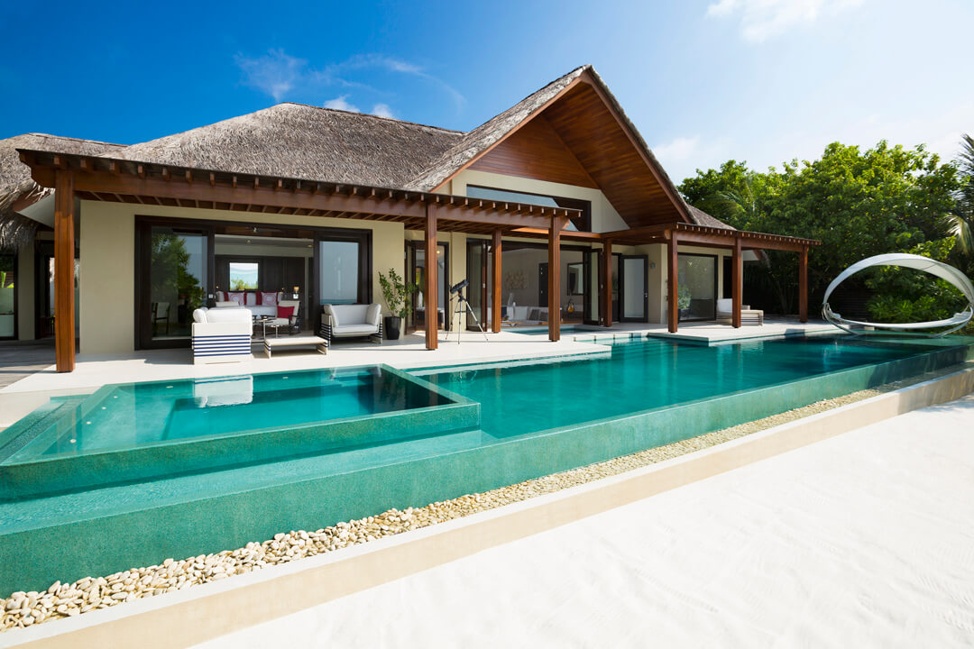 Als wahres Familienparadies offenbart sich dieses Modell einer Beach Villa. Die Family Beach Villa mit Pool eignet sich aufgrund ihrer beeindruckenden Gesamtfläche von 255 qm besonders gut für Familien oder Paare, die viel Platz benötigen. Zusätzlich zu den Highlights der zuvor genannten Beach Villen enthält diese Villa ein Wohnzimmer und ein Gästebad. Auch der private Pool der Suite ist auf die Bedürfnisse einer Familie angepasst und somit deutlich größer als die Pools der vorangegangenen Strandunterkünfte.