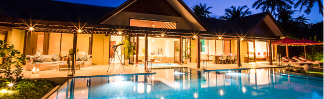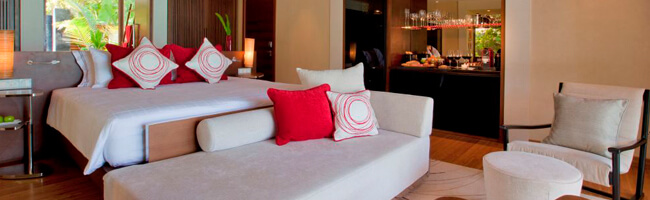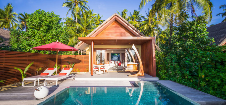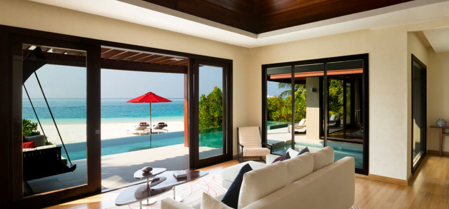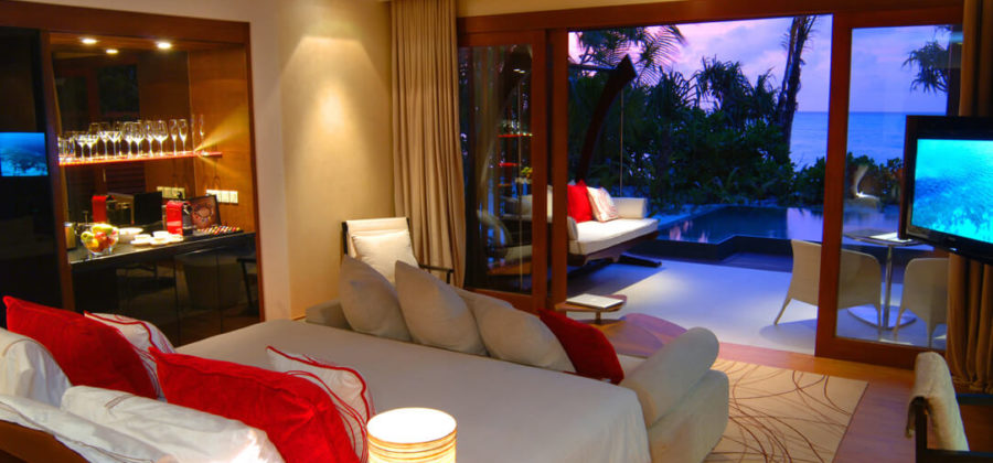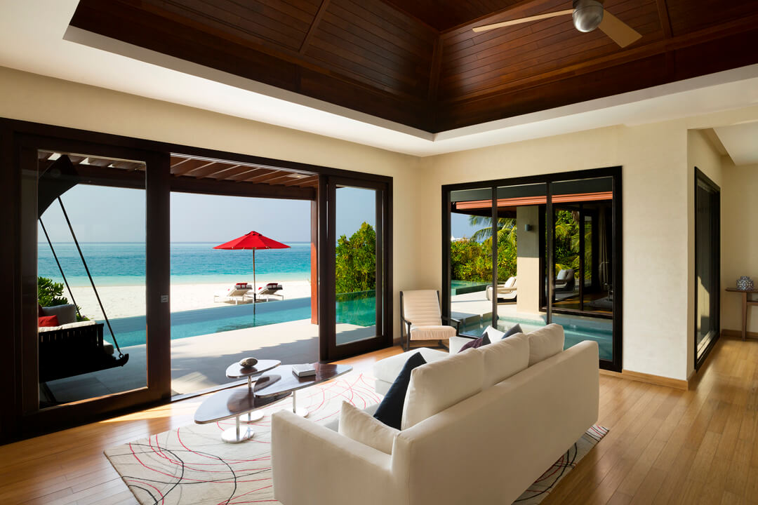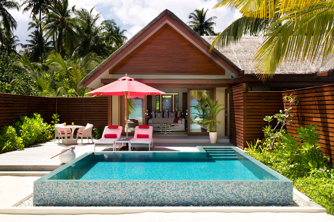 Hinweis: Die Deluxe Beach Villa mit Pool bietet die gleiche Ausstattung, den Ausblick jedoch in Richtung Sonnenuntergang. Die normale Beach Villa mit Pool ist mit Blick auf den Sonnenaufgang ausgerichtet.