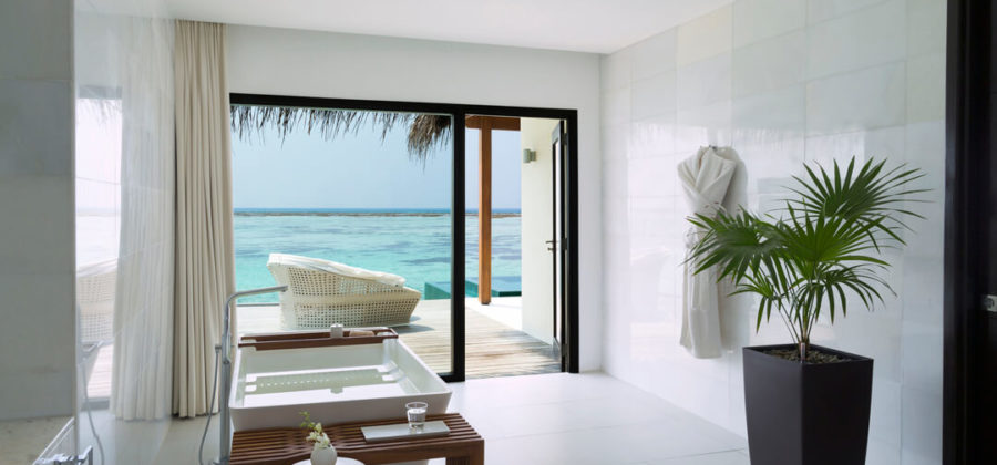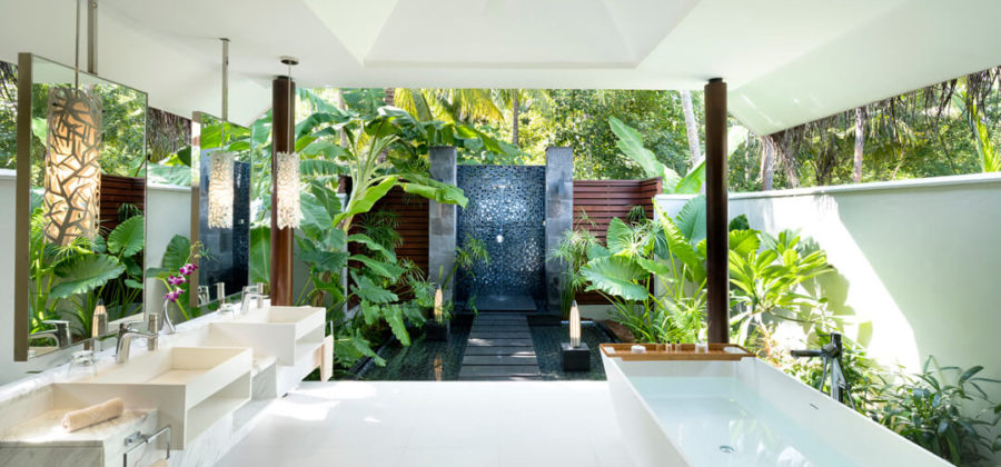 Bei dieser Water Villa handelt es sich um eine Unterkunft, die auf Stelzen über dem glitzernden Wasser des Indischen Ozeans errichtet wurde und dort mit einer schönen Außenterrasse, einem Privatpool und einem direkten Meerzugang überzeugt. Ebenfalls beeindruckend ist das Badezimmer der Water Villa, das zwar größtenteils im Innenbereich liegt, aber dennoch über eine Regendusche verfügt, die sich zum Teil unter freiem Himmel befindet.