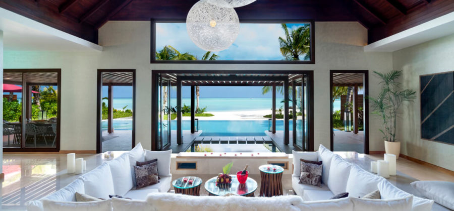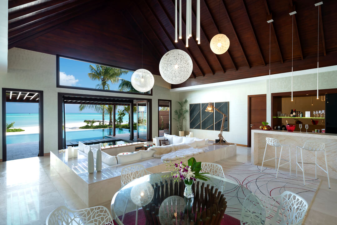 Abgesehen von seiner Gesamtfläche von 635 qm und der Tatsache, dass sich dieser Pavillon am Strand und nicht über dem Wasser befindet, überzeugt er mit denselben Highlights wie der Ocean Pavillon mit zwei Schlafzimmern und Pool.