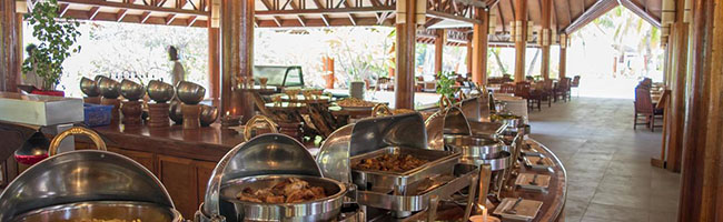 Das Dandehelu Hauptrestaurant bietet Dir die Möglichkeit, Dein Mittag- und Abendessen in Büffetform zu genießen. Einmal in der Woche gibt es ein nahezu rein maledivisches Abendbüffet. An diesem Büffet kannst Du Dich einmal nach Herzenslust durch alle maledivischen Köstlichkeiten durchprobieren und Dich vom angenehmen Ambiente des Restaurants ganz verzaubern lassen.