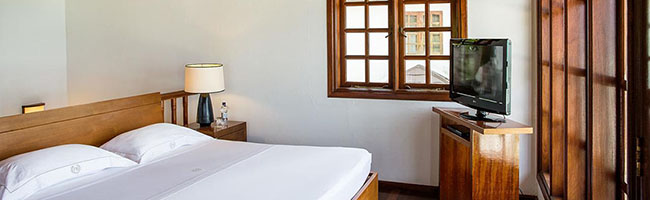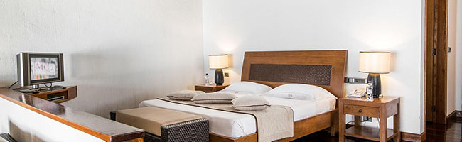 Die Einrichtung der Deluxe Suite des Palm Beach Resort ist sowohl was die Einrichtungsgegenstände als auch die Größe der Suite angeht identisch mit der Junior Suite, nur mit einem gewissen Hauch mehr Luxus. Allein die Lage der Deluxe Suite ist eine etwas bessere. So kannst du von hier aus die verschiedenen Restaurants, Bars und Aufenthaltsmöglichkeiten des Resorts besser erreichen und hast auch kürzere Wege zum Strand. So kommst du natürlich jedes Mal schneller von A nach B und hast im Endeffekt mehr von deinem Urlaub.