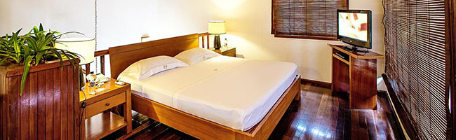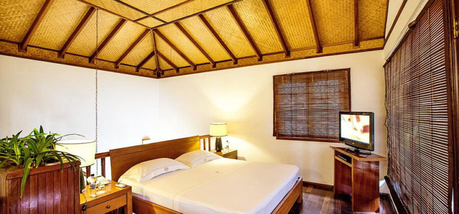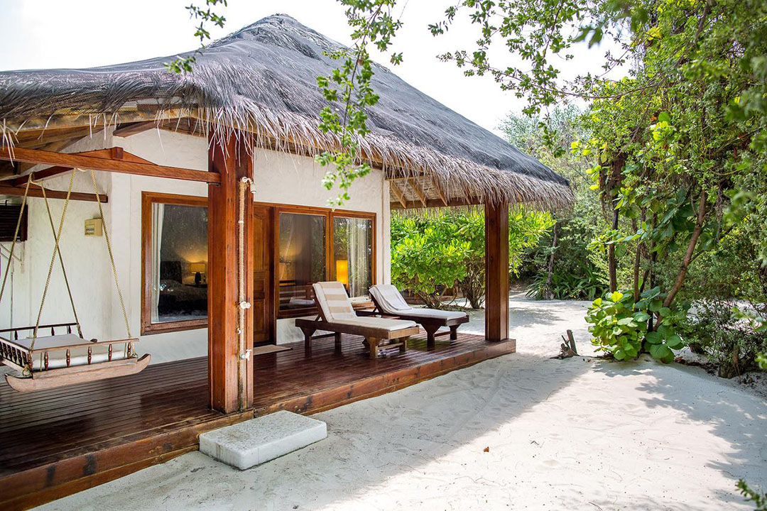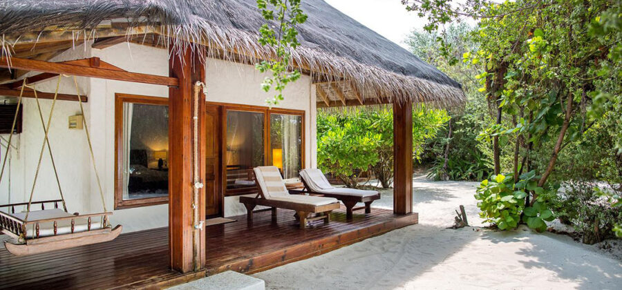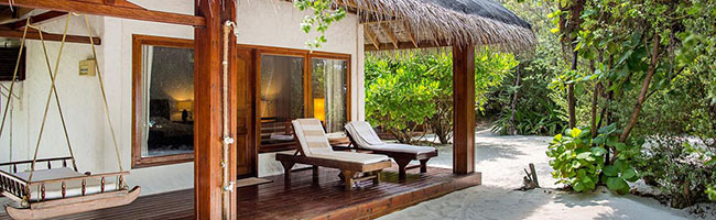 Die Garten Villa ist identisch mit der klassischen Villa im Palm Beach Resort. Der Unterschied besteht darin, dass die Garten Villa im Inselinneren liegt und keinen separaten Strandabschnitt zu bieten hat. Das Inselinnere ist hierbei jedoch auch auf keinen Fall zu verachten, da es mit einer liebevollen gepflegten und üppig gehalten Vegetation aufwarten kann. Wer kein Problem damit hat, ein paar Schritte mehr zum sowieso schon nahe gelegenen Strand zu gehen, um den Geldbeutel ein klein wenig zu schonen, ist mit der komfortablen Garten Villa gut beraten.