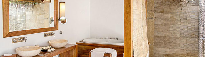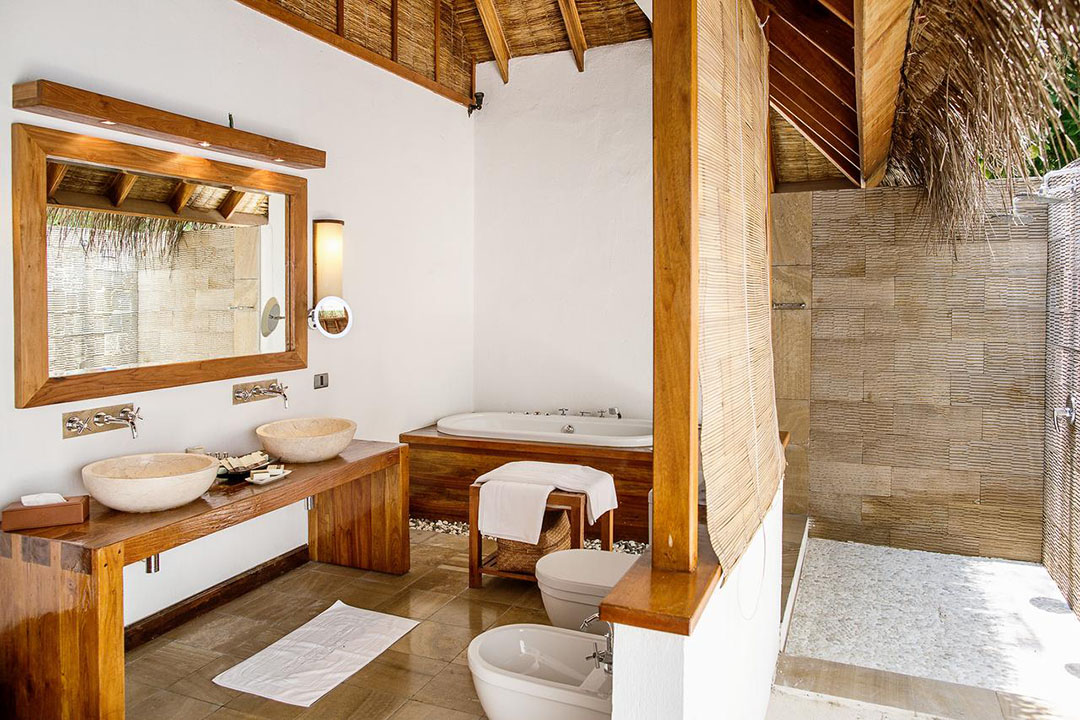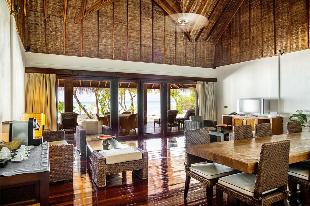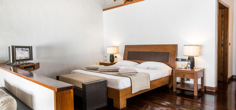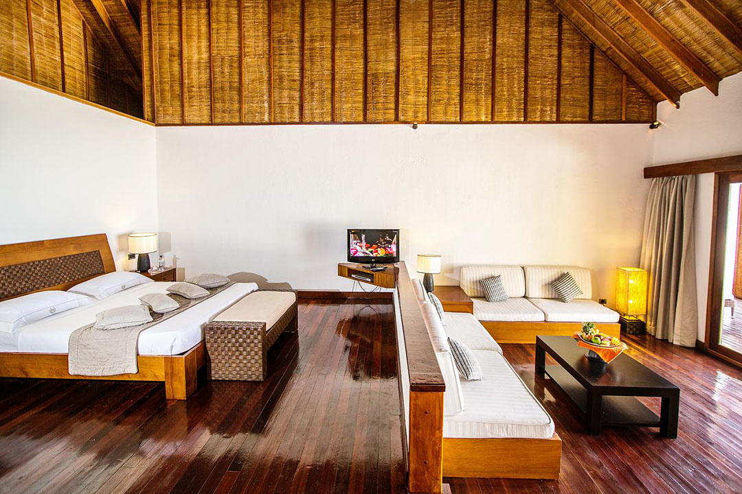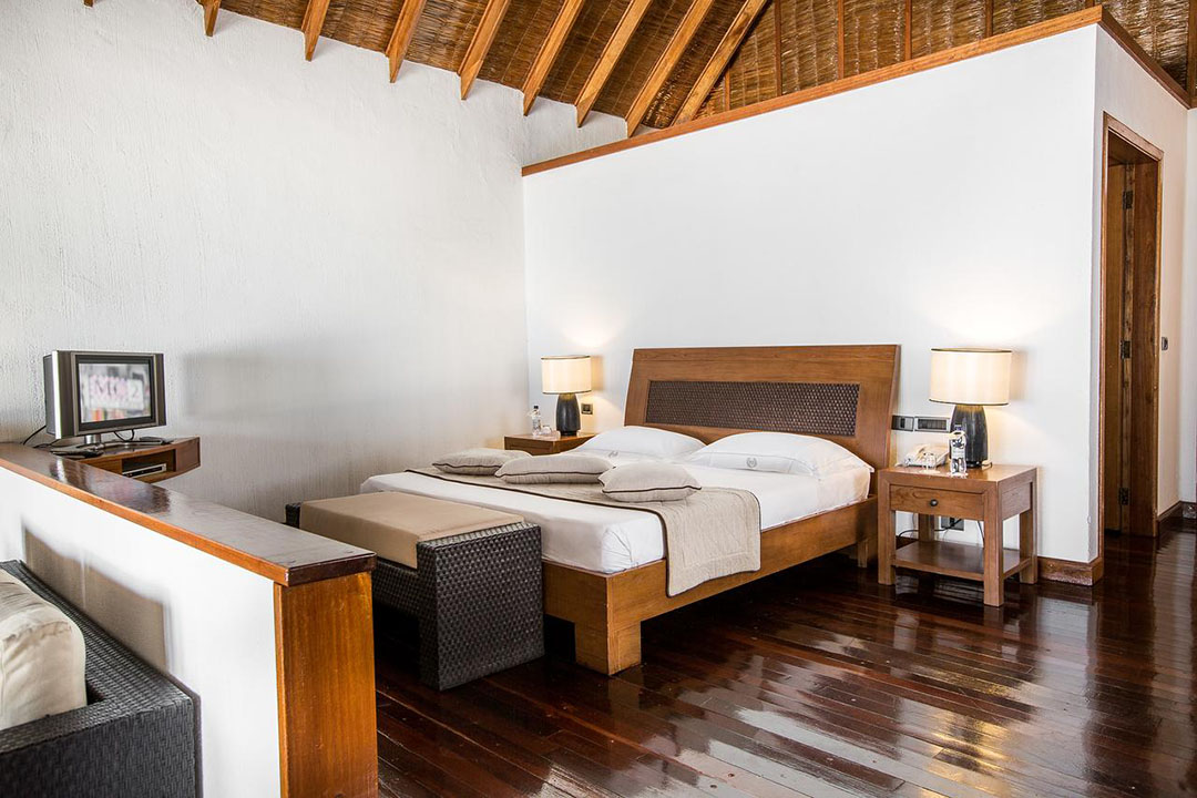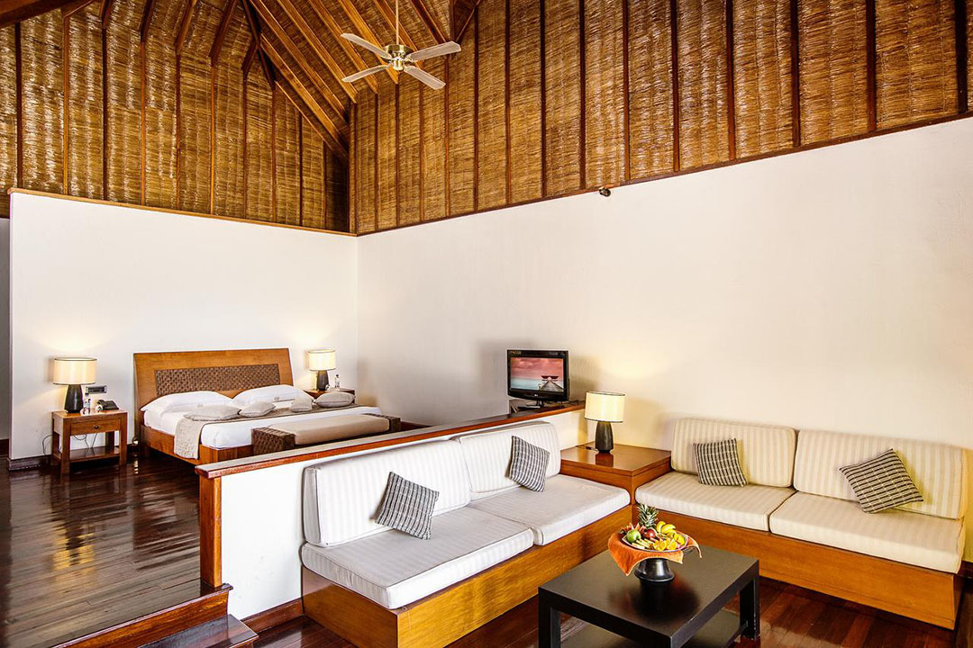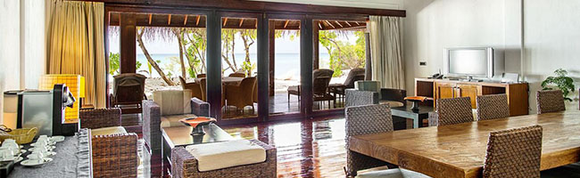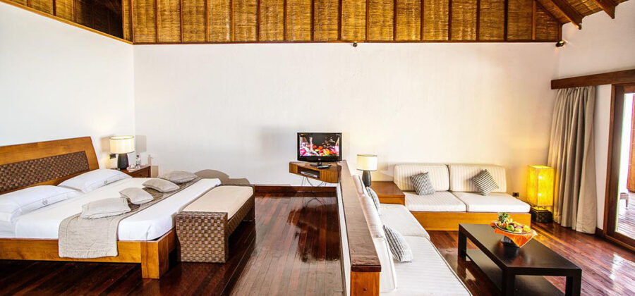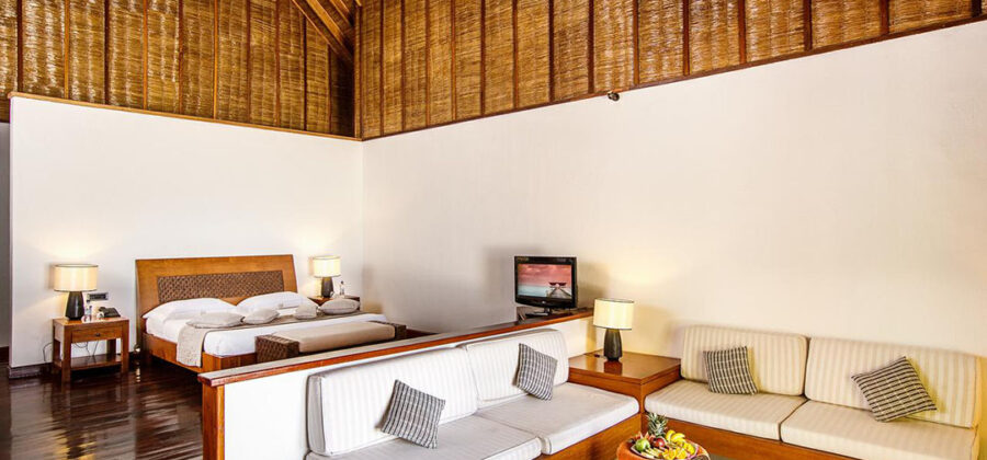 Auf der Sonnenuntergangsseite der Insel gelegen, sind die 100 qm Suiten perfekt für alle Gäste, die gerne etwas mehr Raum zur Verfügung stehen haben. Bis auf die Tatsache, dass hier eine größere Grundfläche zur Verfügung steht, die Inneneinrichtung etwas delikater und luxuriöser wirkt und die Lage eine wirklich hervorragende ist, besitzt die Suite die gleichen Ausstattungsmerkmalen wie die meisten anderen Unterkünfte auf der Insel auch – inklusive einem separaten Strandabschnitt.