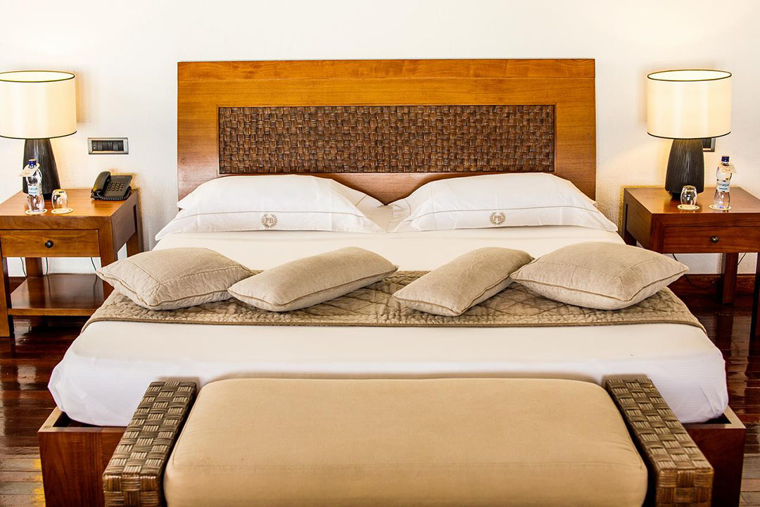 Die komfortable Präsidenten Suite ist ein traumhafter und moderner Luxus-Tempel für sich. 300 qm Grundfläche und eine Einrichtung, die zwar ähnlich ist wie die der anderen Unterkünfte, aber eben in allem sehr viel weitläufiger und luxuriöser, hat diese Unterkunft zu bieten. Unterschiedliche Freiluftbereiche im Haus, weitläufige Schlafzimmer, ein großer Wohnraum und ein privater Strandabschnitt, der Dich vor unliebsamen Blicken schützt – eine wunderbare Kombination für alle, die den absoluten Luxus genießen möchten.