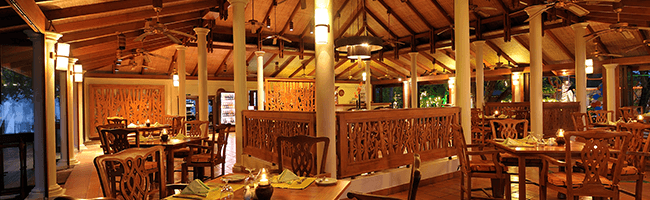 Alternativ kannst Du Dich auch für ein Mittag- oder Abendessen im Raabondhi Restaurant entscheiden. Hier speist Du entweder im Innenraum mit tollem Ambiente oder draußen direkt am Strand. Das À-la-carte-Restaurant bietet eine breite Auswahl an maledivischen und internationalen Gerichten sowie eine hervorragende Barbecue-Karte an, serviert natürlich von besonders freundlichem Personal.