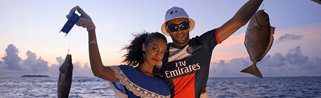 Angelausflüge der verschiedensten Kategorien, vom Nachtangeln bis zum Großtierangeln auf hoher See, gibt es hier ebenfalls zu erleben. Für Fans des Angelsports ein absolutes Muss. Eine andere tolle Möglichkeit, um die Insel einmal für ein paar Stunden hinter Dir zu lassen, ist eine Fahrt auf einem traditionellen Dhoni in den Sonnenuntergang hinein. Es gibt kaum etwas Schöneres, als die Farbgewalt eines tropischen Sonnenunterganges von einem solchen Boot aus beobachten zu können.