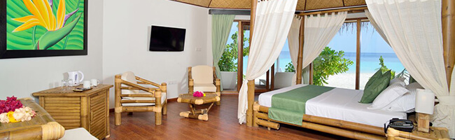 Das Safari Island Resort Malediven besitzt 78 Zimmer in 4 Kategorien. Die Kategorien unterscheiden sich hauptsächlich durch den jeweiligen Zuwachs in Sachen Luxus und Extravaganz. Die Standardeinrichtung ist erst einmal in allen Unterkünften gleich geartet.