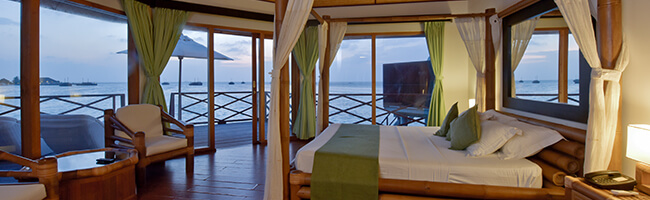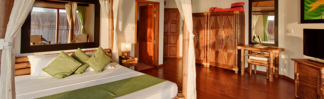 Die einzeln stehenden Beach Bungalows sind die einfachsten Unterkunftstypen im Safari Island Resort und besitzen exakt die oben genannten Ausstattungsmerkmale. Die landestypische Einrichtung ist in den Beach Bungalows noch bewusst einfach gehalten, wenn auch bereits hier durchaus vergleichsweise luxuriöser als ein Hotel in einem anderen Urlaubsgebiet. Außerdem wird hier die Liebe zur Natur und einem bewussten Umgang mit dieser deutlich. Die Nähe zum Strand und der Meerblick von der Terrasse machen diese Unterkünfte auf jeden Fall zu echten Erholungsoasen.