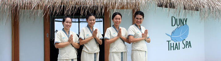 Im Spa und Wellnessbereich des Duny-Thai Spa im Safari Island Resort & Spa werden traditionelle thailändische Massagen und professionelle Kosmetik- und Beautyanwendungen angeboten.