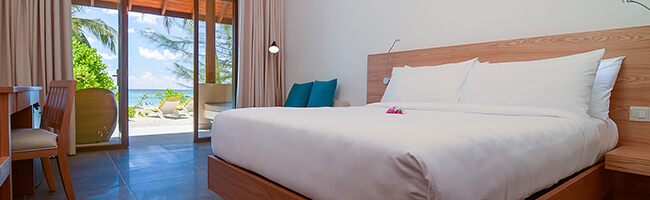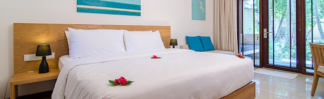 Die Superior Bungalows sind in Zweierblöcken aufgeteilt und liegen ebenfalls in der schön gestalteten und liebevoll gepflegten Gartenanlage des Resorts. Auch hier erwartet Dich ein offenes Badezimmer, in welchem du in unmittelbarer Nähe dem sanften Rauschen des Indischen Ozeans lauschen kannst, eine große möblierte Veranda mit einem Daybed und Sitzgelegenheiten und einem komfortablen King-Size-Bett im Inneren des Bungalows. Dank dieser Ausstattung kann sich jeder Gast im Summer Island Maldives Resort vollkommen entspannen.