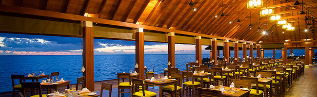 Das Hiya Overwater Büffet-Restaurant steht den Gästen der Premium Beach Villa und der Water Villa zur Einnahme des Frühstücks, Mittag- und Abendessens in Büffetform zur Verfügung. Auch hier gilt, dass die Speisefolge alle 14 Tage wechselt. Das besondere Ambiente dieses Restaurants, das ähnlich wie die Wasservillen auf Stelzen ins Meer hineingebaut wurde, macht den besonderen Reiz hier aus.