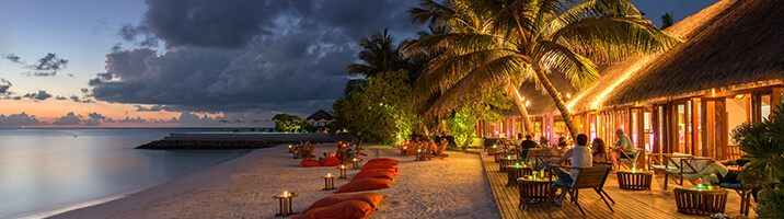 Auch in den Bars des Resorts kannst Du den Tag über oder am Abend wunderbar abschalten und einen guten Cocktail oder einen anderen Drink Deiner Wahl genießen – am besten natürlich all inclusive. Hier bietet sich die Nevi Main Bar an. Die Bar steht Dir von 9:00 Uhr bis Mitternacht zur Verfügung. Verschiedene Snacks wie Pizza, Burger, Sandwiches oder Eiscreme werden auch hier gereicht – für All-Inclusive-Kunden natürlich bereits im Preis inbegriffen. Die Lage direkt am Strand macht diese Bar zu einem beliebten Treffpunkt im Summer Island Malediven. Die Avi Cocktail Lounge mit Sonnendeck ist eine Mischung aus À-la-carte-Restaurant sowie Cocktail- und Champagner-Bar. Dazu hast Du die Möglichkeit, auf dem Sonnendeck bei einem Cocktail, einem guten Wein oder einem Glas Champagner zu entspannen und den Blick auf das Meer gepaart mit dem sanften Rauschen der Wellen zu genießen.