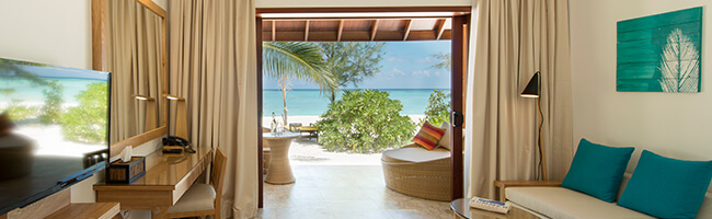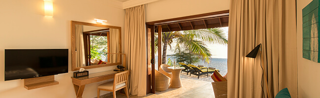 Die Superior Vista Zimmer, die ebenfalls in Viererblöcken in einzelnen Häusern direkt am Strand angeordnet sind, bringen den ersten Hauch von Luxus und weitreichendem Komfort auf. Ein wundervoller Meerblick und die direkte Nähe zum Strand sind hier ebenso als Vorteile zu benennen wie die größere Grundfläche, das King-Size-Bett und das etwas größere, ebenfalls offene Badezimmer. So kannst Du sofort in die erfrischenden Fluten des Indischen Ozeans springen, wann immer Dir danach ist.