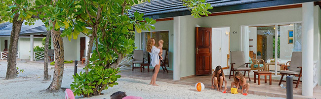 Genieße mit deiner Familie die 104 Quadratmeter große Two Bedroom Family Beach Villa. Im Schatten der großen Palmen können die Kinder auf dem privaten Strandabschnitt spielen und die tropischen Malediven erleben. Die Villa bietet genügend Platz für 6 Personen und ist mit einem großen Bad ausgestattet. Von der Terrasse aus ist man in einigen Schritten am Meer und kann sich erfrischen.