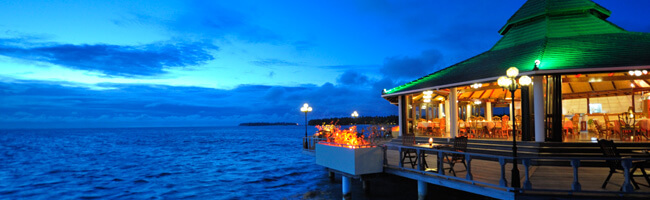Bei diesem Restaurant wird es Liebhabern der italienischen Küche garantiert warm ums Herz. Denn das Ristorante Al Pontile des Sun Island zaubert allerlei leckere Köstlichkeiten aus dem italienischen Stiefel und befördert seine Gäste auf eine Gourmetreise der italienischen Art. Ein besonderer Pluspunkt dieses schicken Restaurants: Es befindet sich ähnlich wie die Wasser Bungalows auf Stelzen über dem Indischen Ozean und schafft aufgrund dieser exquisiten Lage ein Ambiente der Extraklasse!